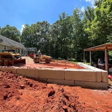 If you're in need of a retaining wall. Our team has the solution, we offer several types of retaining walls and shore stabilization using rip rap. For residential and commercial applications, we recommend using Redi Rock retaining blocks. Blocks are poured solid concrete that are prefinished. This product will last a lifetime.